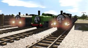 Gordon & Thomas & Edward & His Trainz Friends - - - - - Gordon & Thomas VS Donald And Douglas CGI Series Duck Loves Scottish Twins Engines!