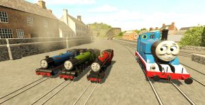Sodor Dark Realm Percy Push's thomas into the arm of the breakdown crane