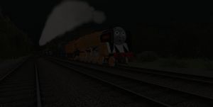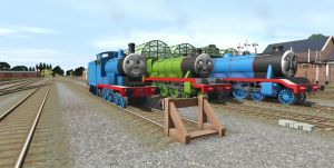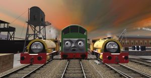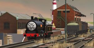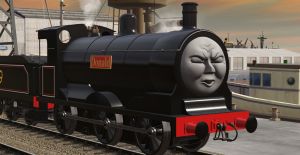 Salty the dockyard's diesel shunter, was derailed and gutted out. he was just an empty shell. White Graffite on his side said "Yo Ho Ho"