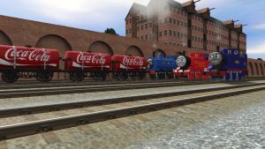 Thomas shunting the Red Express Coaches