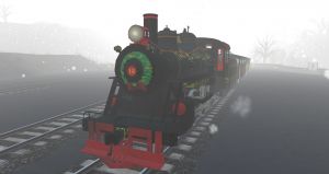 On a snowy Dece,ber evening, Tweetsie Railroad #12, decked out for the holiday season, pulls into the station for the first run of the night
