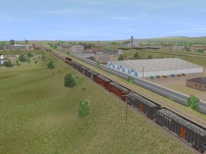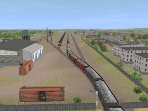 ST - ST Village yard, arriving back with empties, loaded train pulling in