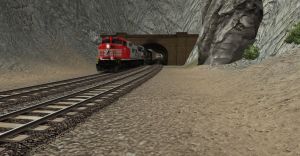 NS 20I emerges from a tunnel. You might also be able to see CSX train Q263 in the other end of the tunnel.