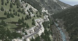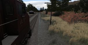 Screenshot of the Columbia Basin Gorge and the track crossing a bridge. There is so much to see in the routes that you can't from a train..