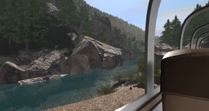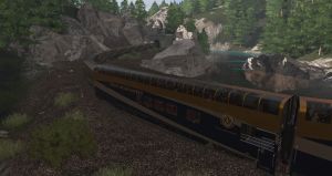 Managed to get a screen shot of the train going bending around the Rocky Mountains. You can see some of the passenger cars and the engines.
