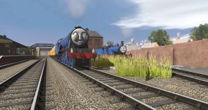 N.W.R No.4, "Gordon", is seen sharing the news to No. 2, "Edward", at Wellsworth Station, the top station of the latter's branch line.