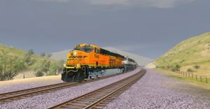 BNSF ES44DC #7846 leads 2 BNSF Executive MACs on a Manifest on the Mojave route.