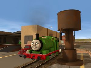 Thomas puffingalong the mainline.