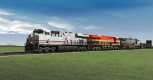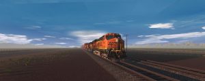A BNSF ES44DC lead a train out of Corcoran California on September 25th, 2014. Behind the GEVO is an SD75M.