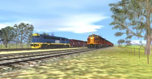 PL7, 48159, 481?? & PL6 pass through Yerrinbool with loaded coal no. TM86, with 2x82 classes assisting on the rear.