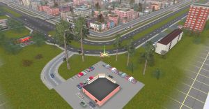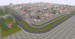 Small City with traffic controled intersections, a freeway and Tram around the city. Can be merged with your layout.