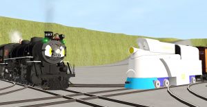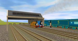 The Fat Controller talking to Thomas and Billy on what to bring to the airport