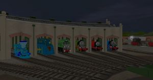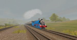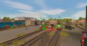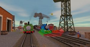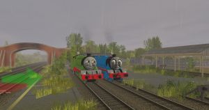 Toby and Percy laugh at Duck after he crashed into the stubborn crossing