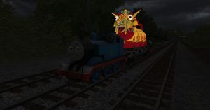 Thomasd and Percy scares Arry and Bert with Chinese Dragon