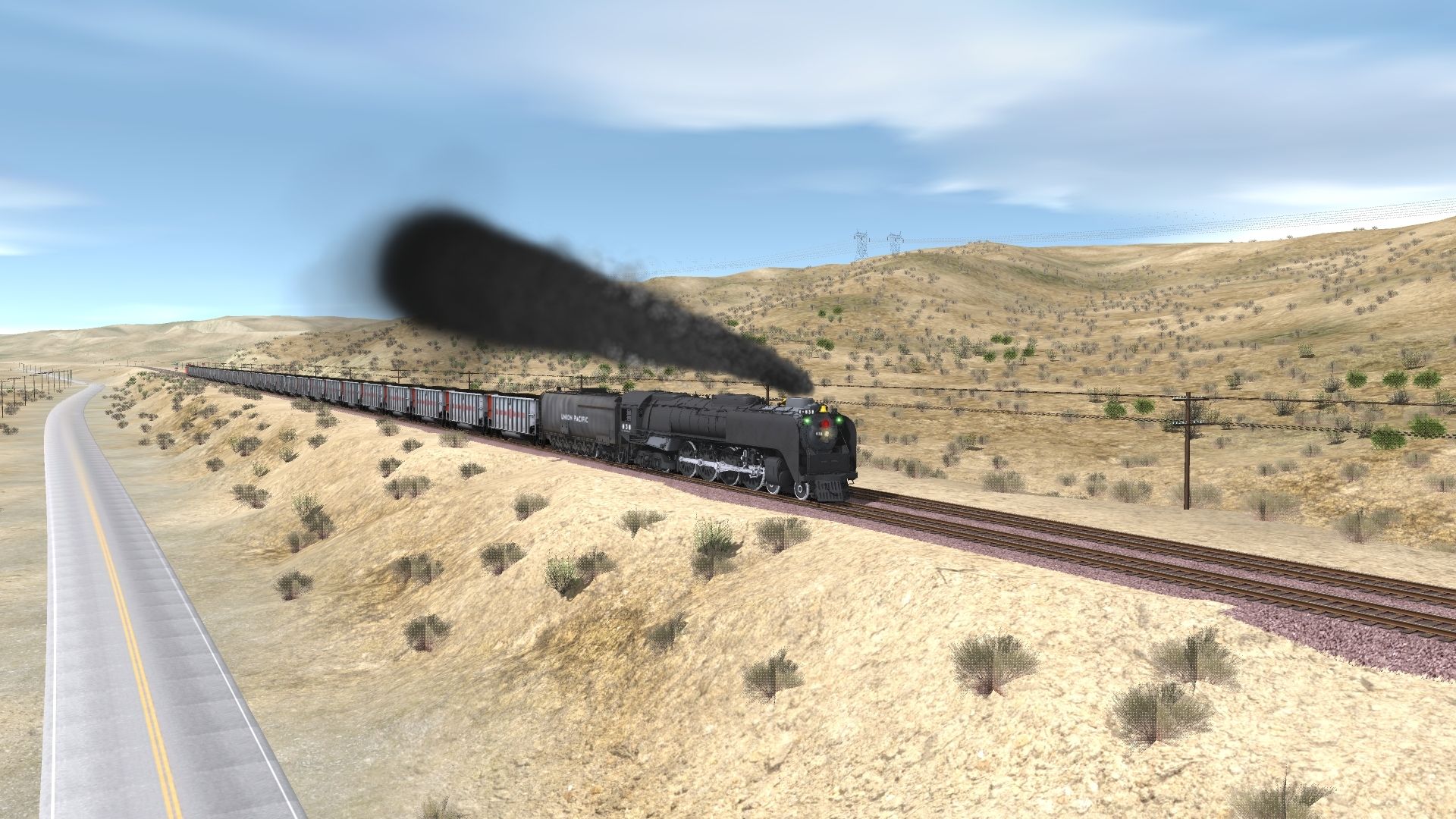 Tags: Trainz: A New Era, Cajon Subdivision - 1990 Part 1: The Pass-2, fef-coal-1, Loco UP FEF-3 838, Loco UP FEF Tender Black oil weatherd, Custom C80 - Havenwood Southern, Caboose C&O 90212 red