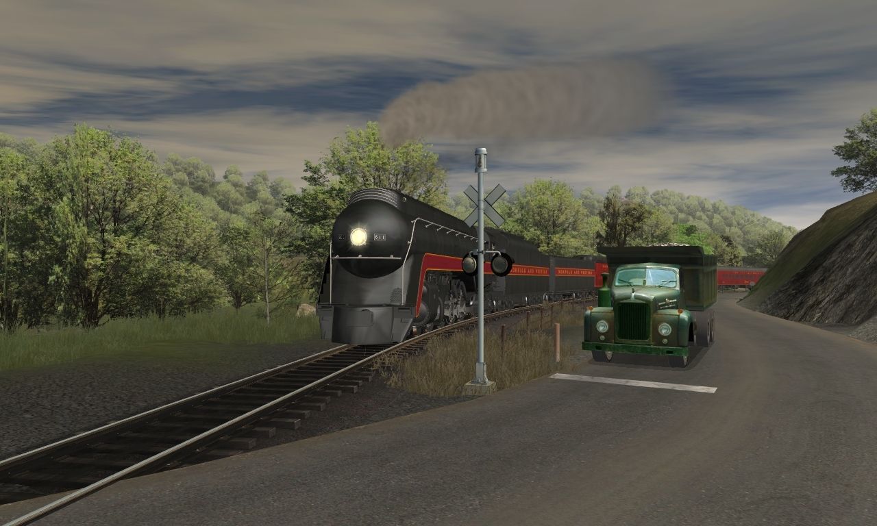 Tags: Trainz: A New Era, Coal Country, Coal Country - NS, N&W J Class Engine, N&W J Class Tender, N&W J Class Aux Tender, N&W Tool Car #1407, N&W NS Powhatan Arrow 01 P1 Locker Car 502, N&W NS Powhatan Arrow 02 P2 Divided Coach 511, N&W NS Powhatan Arrow 03 P3 Standard Coach 535, N&W NS Powhatan Arrow 04 P3 Standard Coach 537, N&W NS Powhatan Arrow 05 P3 Standard Coach 538, N&W NS Powhatan Arrow 06 D1 Diner 492, N&W NS Powhatan Arrow 07 P4 Observation Lounge 581