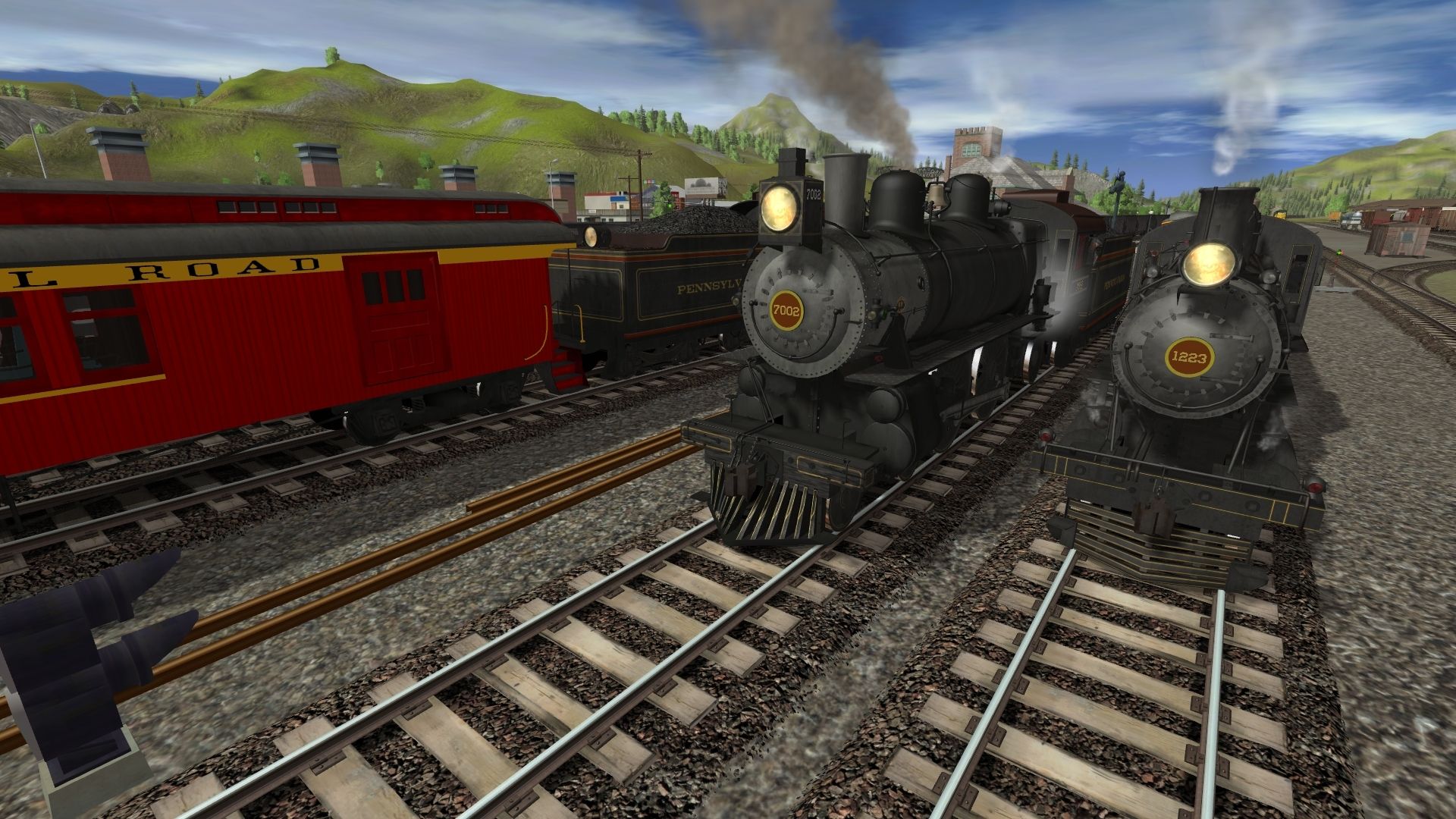 Tags: Trainz: A New Era, Kickstarter County, Up The Mountain, PRR D16sb Engine, PRR E7s 7002 Engine, SP GP40-2, AA RS1, EMD SD40-2 CNW, PRR C630, SRC 475 Engine V1, SRC 90 Engine V7, N&W M Class Engine V2, NYC J3a Dreyfuss Hudson Engine V1, SP GS-4 Engine War Baby