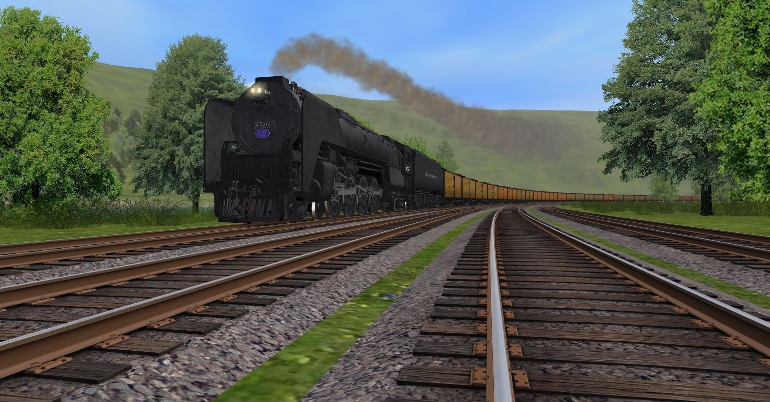 Tags: Trainz: A New Era, Happy Place RR, NYC Niagara Engine V2, NYC Niagara Tender V2, PFE R-40-2 Reefer Late, PFE R-40-2 Reefer Early, Caboose C&O 90212 red