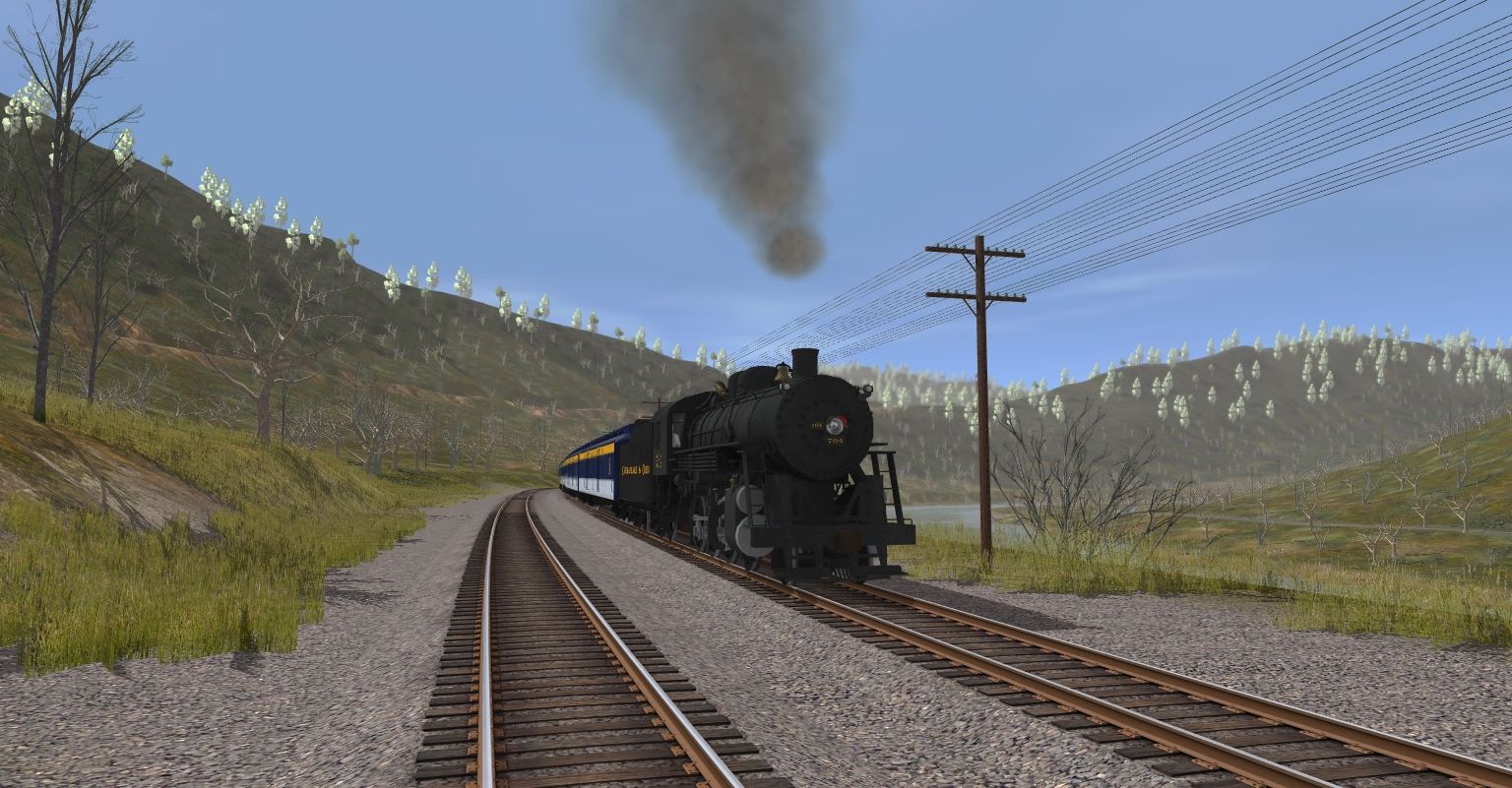 Tags: Trainz: A New Era, C&O Hinton Division, C&O G-2-p 2-8-0, C&O 9-RC Coal Tender, C&O Pullman Baggage 291, C&O Pullman Baggage 283, C&O Pullman Coach Car 706, C&O Pullman Coach Car 704, C&O Pullman Coach Car 712, C&O Pullman Coach Car 715, C&O Pullman Coach Car 717