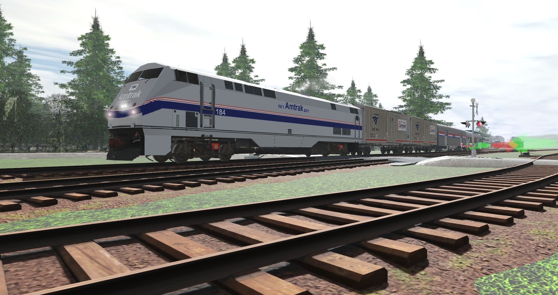 Tags: Trainz Railroad Simulator 2019, Marias Pass, Default, Amtrak P42DC 184 Heritage Phase IV TS2009 SP4/TS2010/TS12, GE U30C CSX, GECX C40-8W #7312 (EX CSX), Genset 3GS21B Locomotive CONRAIL 4097, Amtrak Baggage Car, Amtrak Baggage, AmtraK Observation, H43 3Bay Hopper CP Rail a MFX#, Tanker40ftJMHuber 76303 LARS, GTW Bulk Hopper, 50ft Reefer WSOR 503172