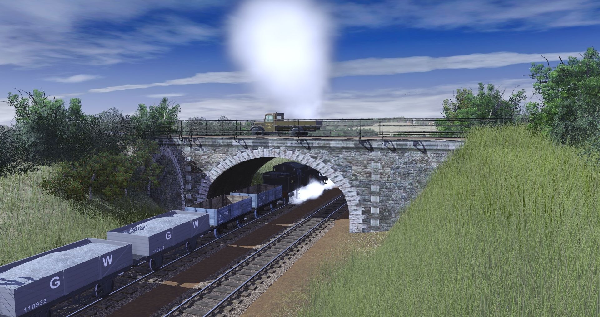 Tags: Trainz Railroad Simulator 2019, 1930s Cornish Mainline and Branches - Plymouth to Penzance, Default, BR ex GWR 7200 class, GWR 1366 class, GWR 6 plank w ACS, GWR 5-plank open with gravel load, GWR 9 ton 16 foot van early detailed, GWR 5 Plank w ACS 944, GWR 13T Brake Van - Acton Depot, GWR 5 Plank w ACS 949, GWR 03992 7-plank wagon, GWR 67812 7-plank wagon, GWR (F. Bendle) 20T Mineral coal load
