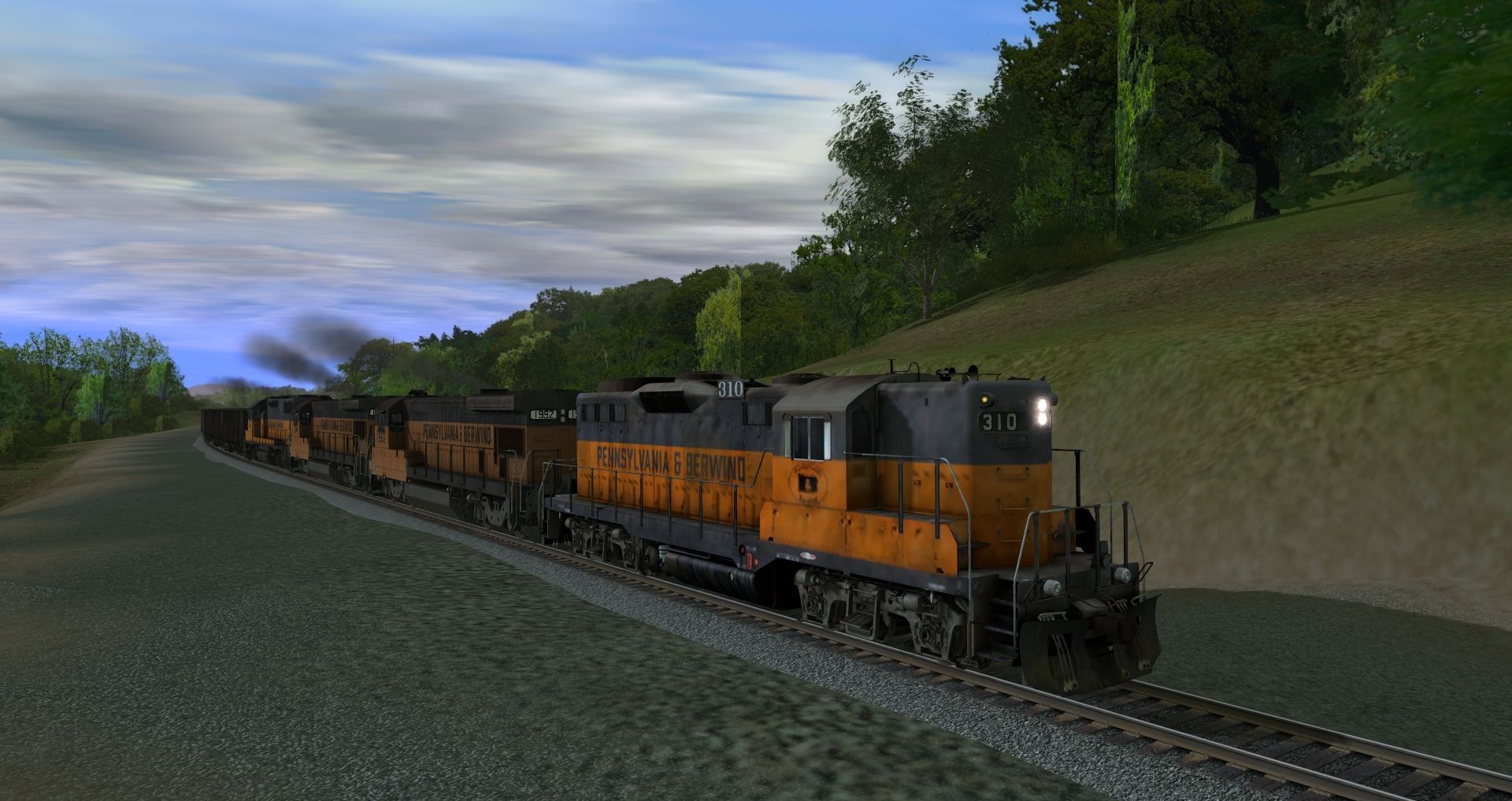 Tags: Trainz: A New Era, Pennsylvania & Berwind Phase 1, Mill Creek Local, P&B GP9 high hood (ex-MILW), P&B B30-7, PB GP38-2, P&B 100 Ton Hopper