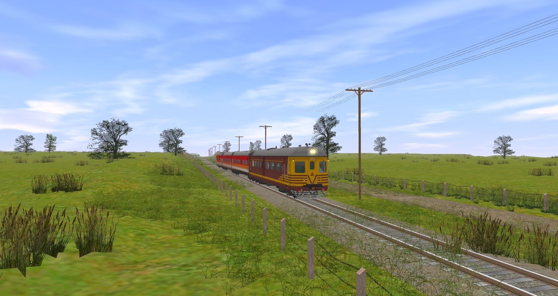 Tags: Trainz: A New Era, NSW Queens Bay, Coastal Mixed Traffic, NSWGR 900 Class PF Reverse, NSW SRA 900 Class HPF Railcar, NSW SRA 800 Class TFR Trailer, NSW SRA 800 Class TB Trailer
