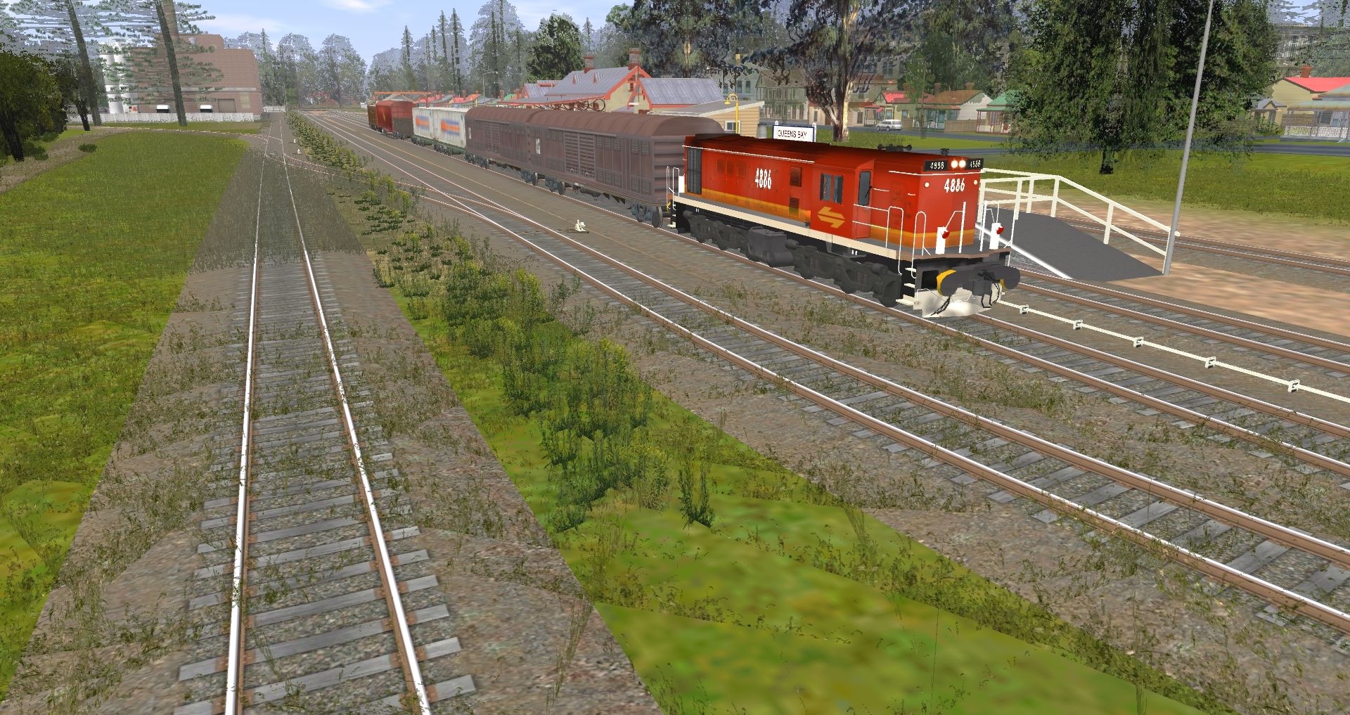 Tags: Trainz: A New Era, NSW Queens Bay, Coastal Mixed Traffic, NSW SRA 48 Class Candy, NSW SRA NLKY Louvre Van, NSW SRA NQSF Container Wagon + LRC Container, NSWGR BDL Open Wagon, NSWGR NGFF, NSWGR IHG Brake Van