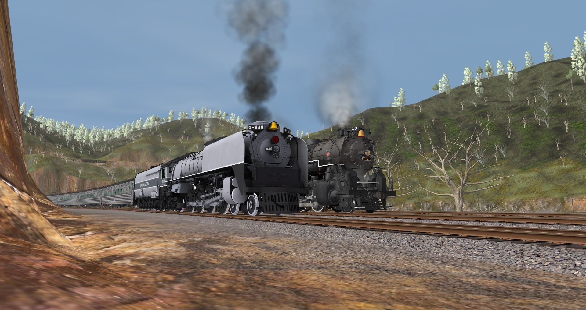 Tags: Trainz: A New Era, C&O Hinton Division, UPRR FEF-3 840, NKP Berkshire Engine, NKP Berkshire Tender, UPRR FEF TTG-S oil tender, Southern Streamlined Coach