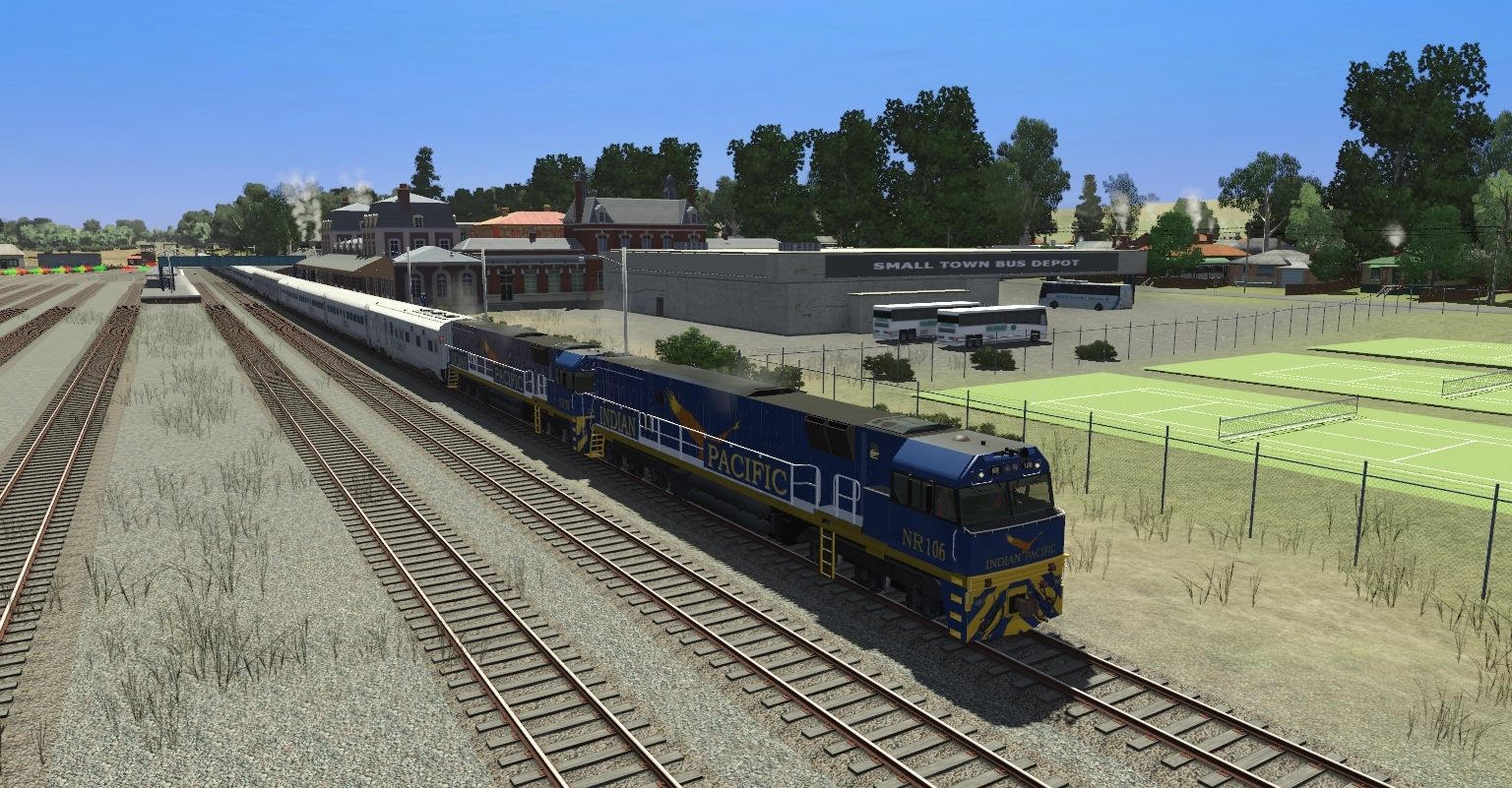 Tags: Trainz Railroad Simulator 2019, ARTC NSW Main South - VR North-East, Default, NR Class Indian Pacific, Indian Pacific Power Van, Indian Pacific Gold Kangaroo Lounge Coach, Indian Pacific Dining Car, indian pacific sleeper car, Invisible Train