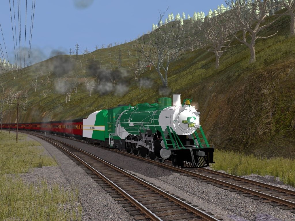 Tags: Trainz: A New Era, C&O Hinton Division, 412 Southern #1409 4-8-2 Mountain Type V2.0, Southern Ps-4 1380 Tender, SP Coast Daylight Articulated Chair Car - ACM