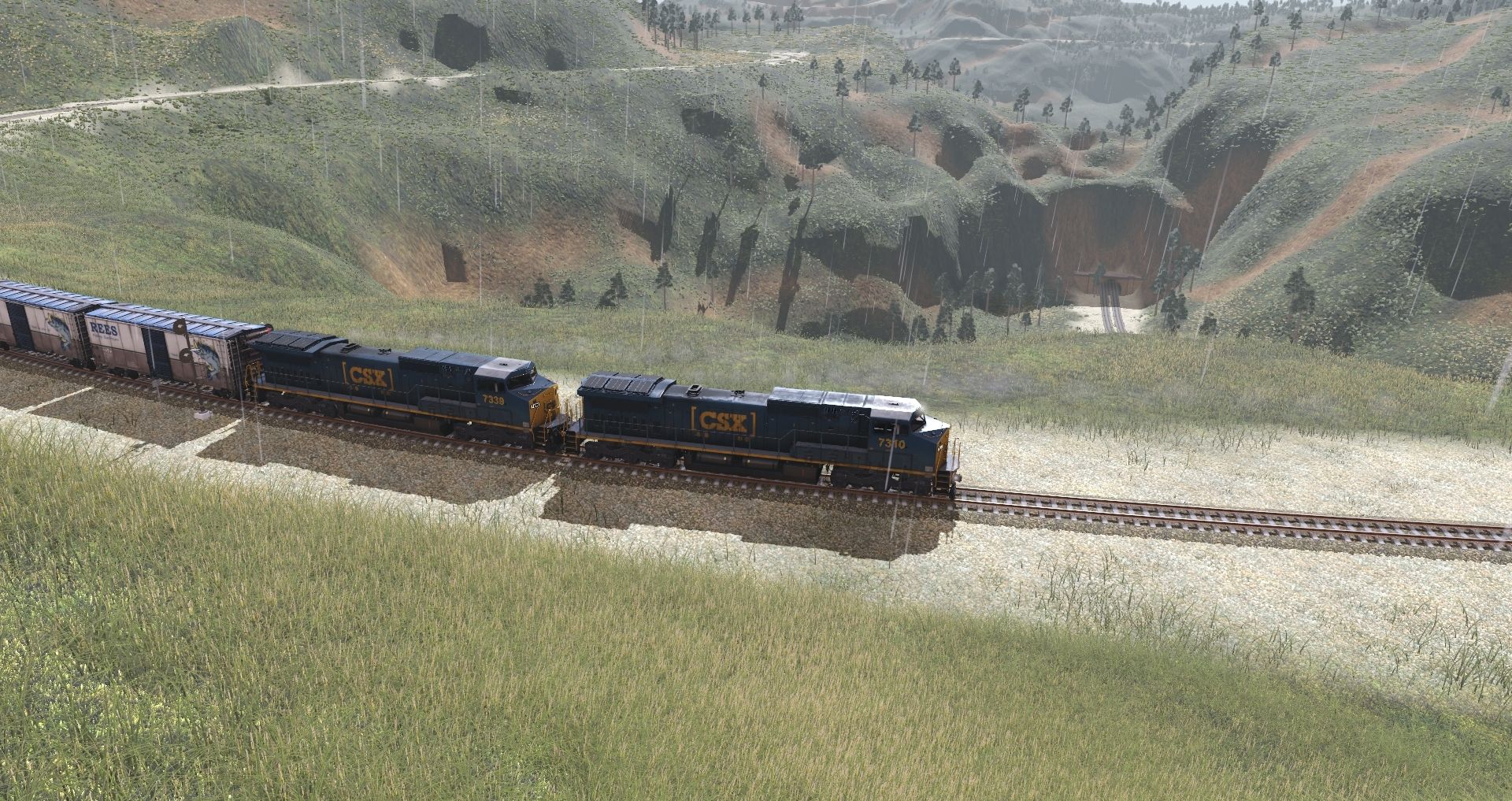 Tags: Trainz Railroad Simulator 2019, Kickstarter County 2, Par défaut 1, CSX C40-8W yn3b (ex-CR), Custom 40' Boxcar - #6, Mill Gondola 52' WL&G (5700 series), BNSF Wagon plat 917504, Custom 40' Boxcar - #1, Custom 40' Boxcar - #4, Zacns VTG Tanker