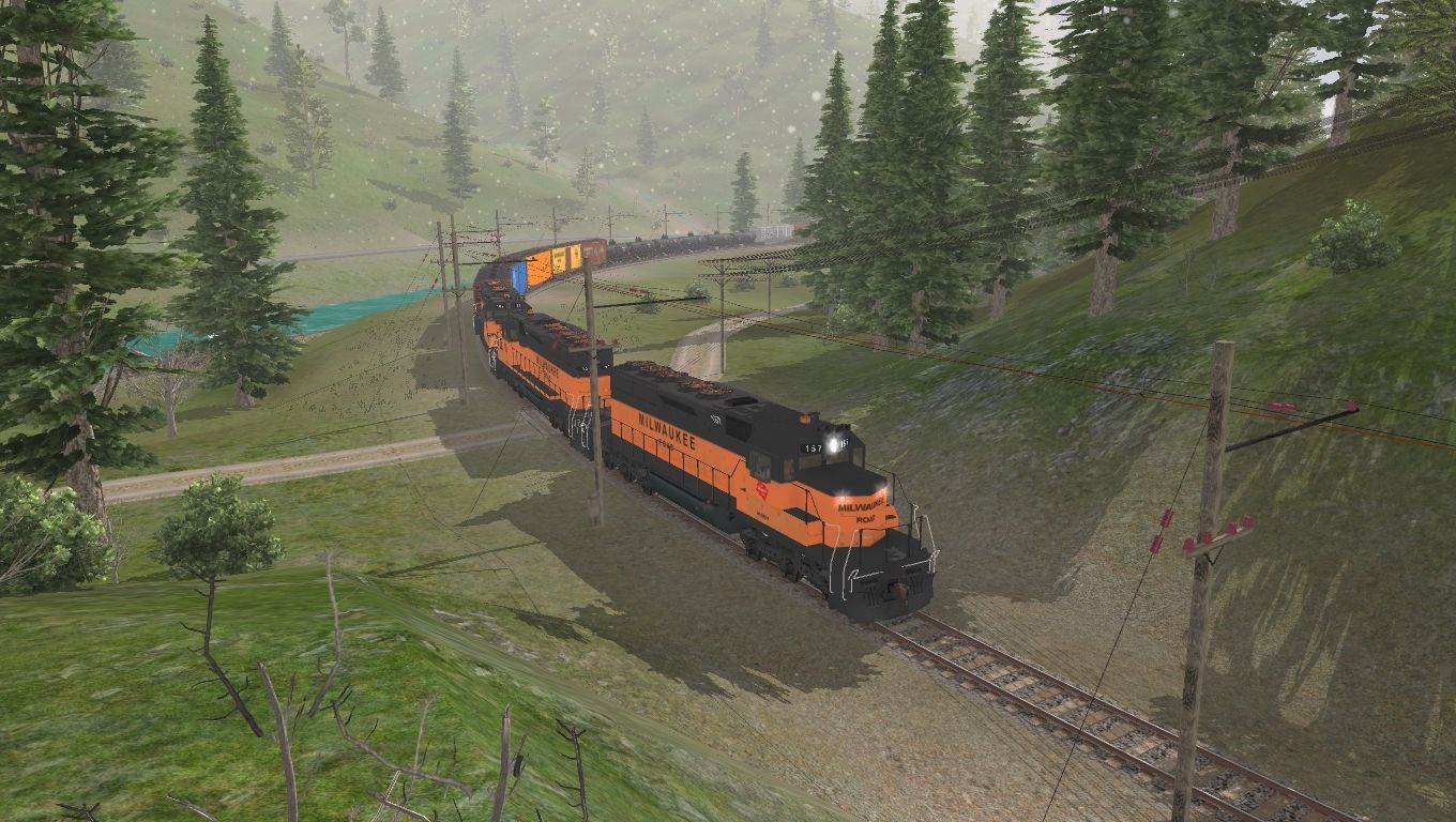Tags: Trainz: A New Era, Milwaukee Road Avery-Drexel, TUME-71402170-SD40-2-MILW, TUME-300514-Boxcar-50ft-CN, TUME-300513-Boxcar-50ft-CN, TUME-300510-Boxcar-50ft-UP, TUME-300506-Boxcar-50ft-MILW, TUME-300507-Boxcar-40ft-MILW, TUME-300533-Tank-Car-SP, TUME-300531-Tank-Car-MILW, TUME-300552-Covered-Hopper-UP, TUME-300554-Covered-Hopper-ATSF, TUME-300551-Covered-Hopper-MILW