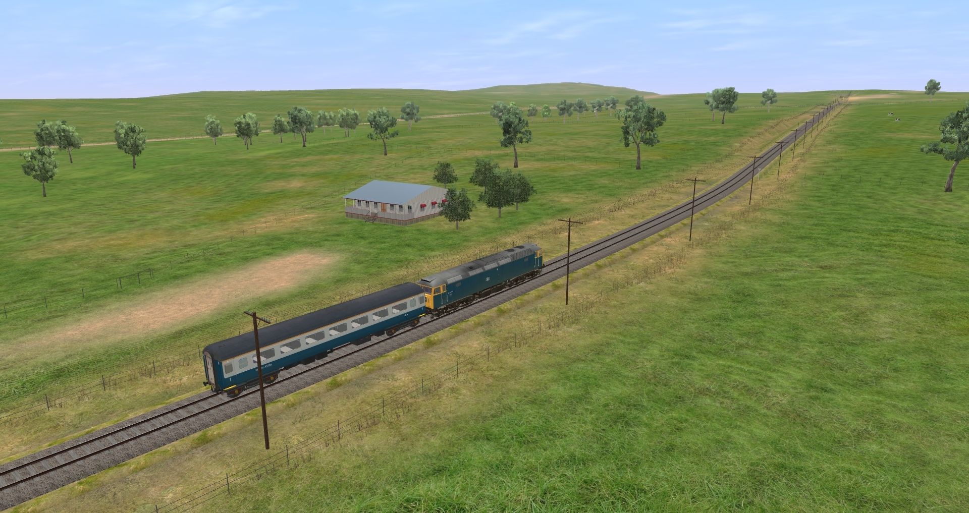 Posted by: Matthias13 | Posted:2019-01-22 18:17:58 Caption: Tags: Trainz: A New Era, Healesville - 1913-1920, BR Class 47 blue- silver roof, BR Blue/Grey MK2d FO