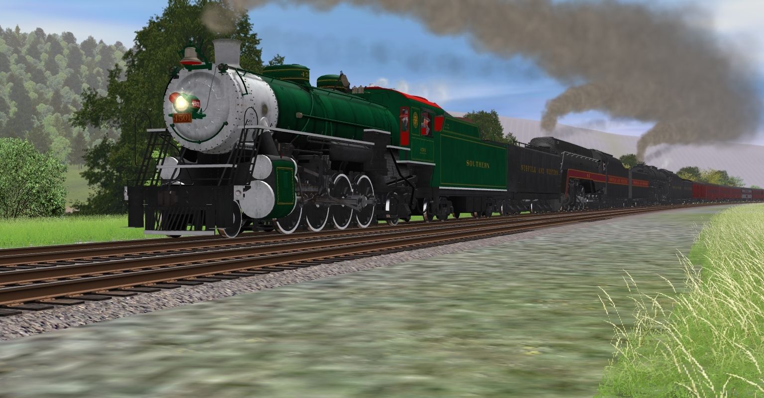 Tags: Trainz: A New Era, Happy Place RR, Southern 4501 Engine Green, N&W J Class Engine, N&W A Class Engine V1, Southern 4501 Tender Green, N&W Aux Tender, N&W J Class Tender, N&W J Class Aux Tender, N&W A Class Tender, N&W A Class Aux Tender, N&W Tool Car #9647, N&W Powhatan Arrow 01 P1 Locker Car 501