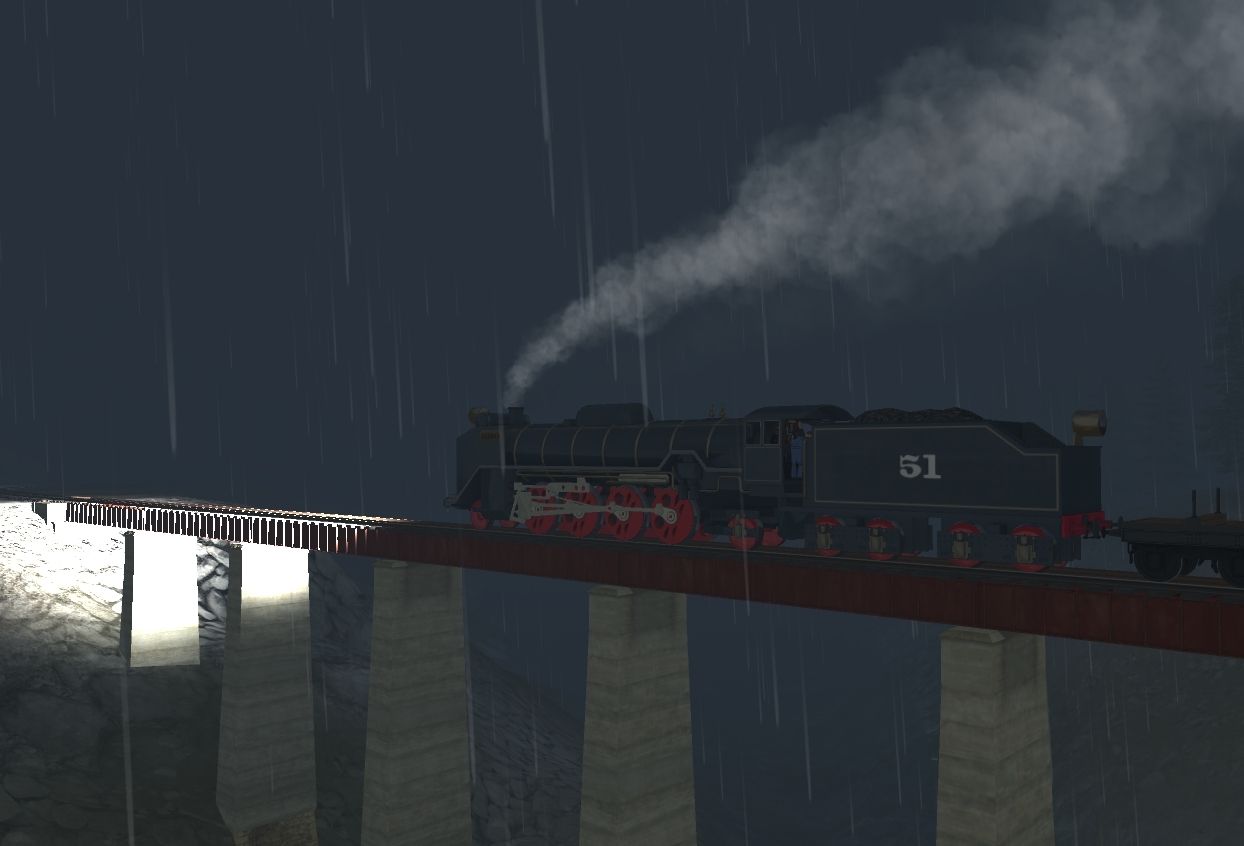 Tags: Trainz: A New Era, Kickstarter County, Hiro the Japanese D51 Engine (Screwlink), NWR Bogie Bolster, Hiro the Japanese D51 Engine's Tender, NWR Cattle Van, NWR 4 Plank Wagon Tarpaulin, NWR Brake Van