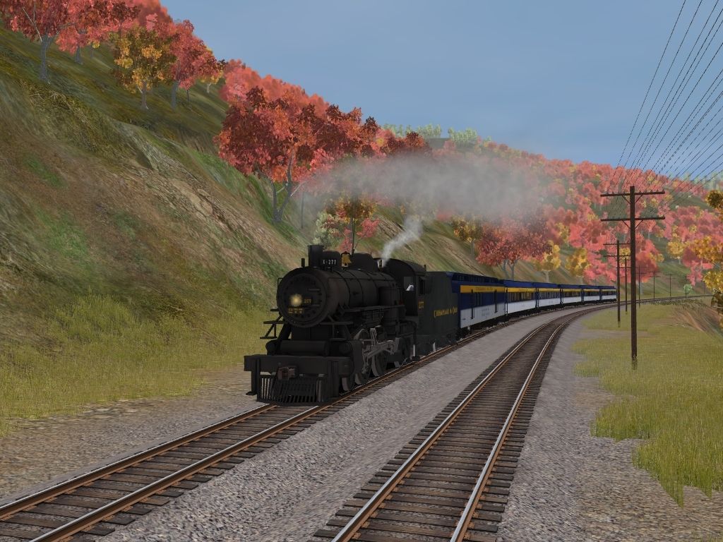 Tags: Trainz: A New Era, C&O Hinton Division, Backshop 1, C&O A-16 4-4-2 #277, C&O 7-RG Coal Tender, C&O RPO 102, C&O Pullman 10-1-2 'Camp McCoy, C&O Pullman 8-1-2 'Stonewall Jackson' , C&O Pullman 10-1-2 'David Massom', C&O Pullman 12-1 'Frederick Muhlenberg' , C&O Pullman 12-1 'Spirit of '76'