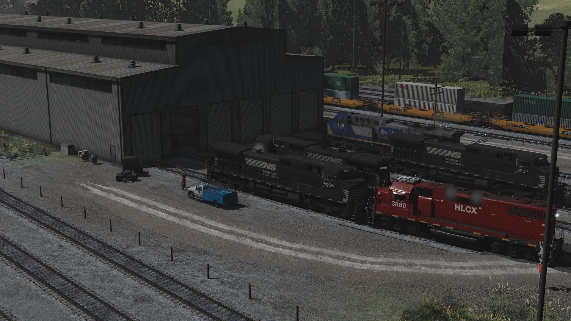 Tags: Trainz Railroad Simulator 2019, Tidewater Point Rail (remake c), HLCX GP38-2 [MP], NS C40-8, NS C40-9W, CSX AC4400CW YN2 100-115, NS SD40-2 3352, NS SD40-2 2a1, NS C40-9 hh, NS G72 Gondola, NW G72 Gondola, BNSF 100 Ton Hopper, BNSF 89ft flatcar