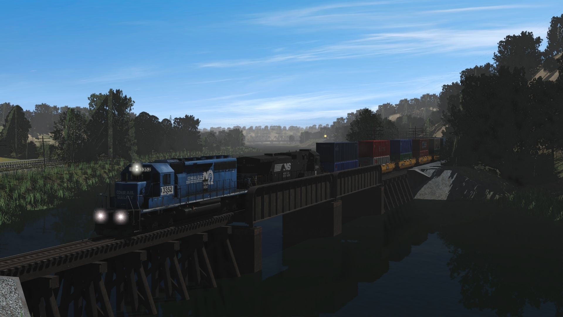 Posted by: epa | Posted:2019-01-29 03:38:12 Caption: Tags: Trainz Railroad Simulator 2019, Tidewater Point Rail (remake c), NS SD40-2 3352, NS C40-9 hh, TTX 48 Husky Stack