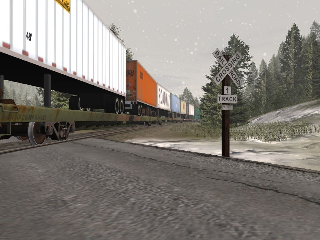 Tags: Trainz: A New Era, Eagle River Railway, Default, GMTX GP38-2 2103 HP, ERSX Ce-11 Caboose (weathered), FEC Green 89ft TOFC Flatcar, FEC Brown 89ft TOFC Flatcar, GFLX Articulated Spinecar A Unit, GFLX Articulated Spinecar B Unit, ERSX MOW 100 Ton Hopper
