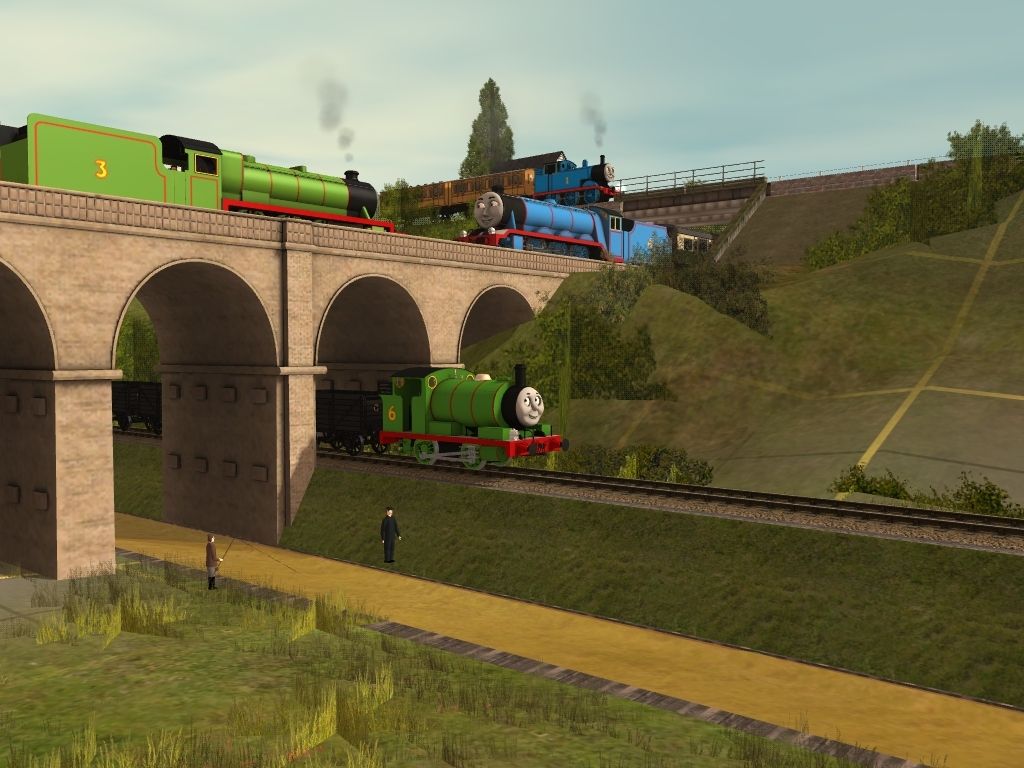 Tags: Trainz: A New Era, The Three Way Road, TTTE - Percy the Small Engine, Henry The Green Engine New Shape 2012, TTTE - Gordon the Big Engine, Thomas The Tank Engine 2012, Edward The Blue Engine 2012, Series 1 Express Composite Coach (Red), Henry's Tender 2012, (#1TFM) S1 Troublesome Truck, Series 1 Express Brake Coach (Red), TTTE - Gordon's Tender, Sodor Brake Van Type 1 - Grey