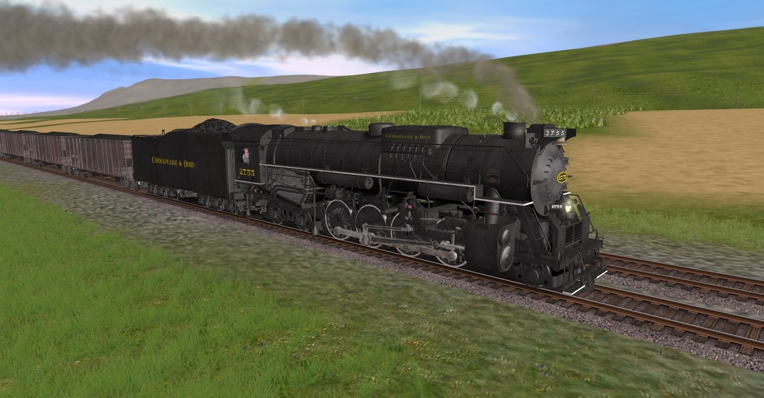Posted by: ryanthebrony1361 | Posted:2019-01-31 20:40:01 Caption: Tags: Trainz: A New Era, Happy Place RR, C&O Kanawha Engine, C&O Kanawha Tender, BPRR 4 Bay Hopper 2, Caboose C&O A915 red