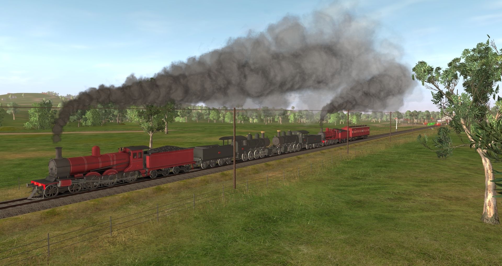 Tags: Trainz: A New Era, Healesville - 1913-1920, VR DD T2 WW1 Red C BG, VR New R T2 Can Red - 1903-1908, VR EE T1 WWI Red - 1918-1923, VR D 92 Can Red - 1908-1918, VR F Class 2-4-2t-NB-C, VR DD T2 WW1 Red C Ten BG, VR V class tender - compound, VR V class Compound - Dead, VR ABL T1 1910-1954 carriage, VR M T4 Cattle 8t BG, VR Q Flat T3a - 1