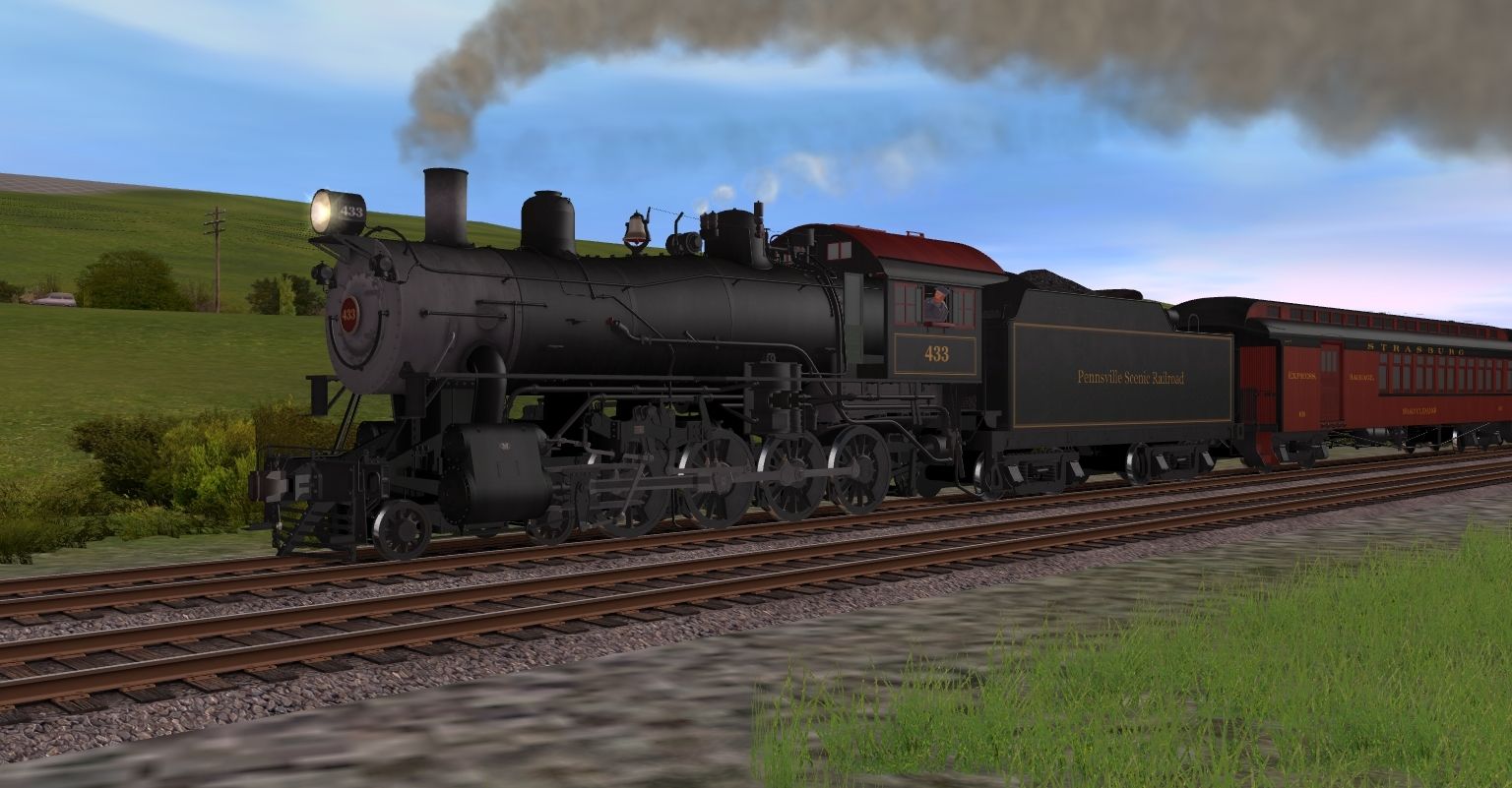 Tags: Trainz: A New Era, Happy Place RR, PSRR 433 Engine V1, PSRR 433 Tender V1, SRC Combine Donald E L Hallock, SRC Coach William McFarlan, SRC Coach William M Moedinger, SRC Coach Warren F Benner, SRC Coach Walnut Hollow, SRC Coach Susquehanna, SRC Coach Mill Creek, SRC Coach Huber Leath, SRC Coach Grasshopper Level