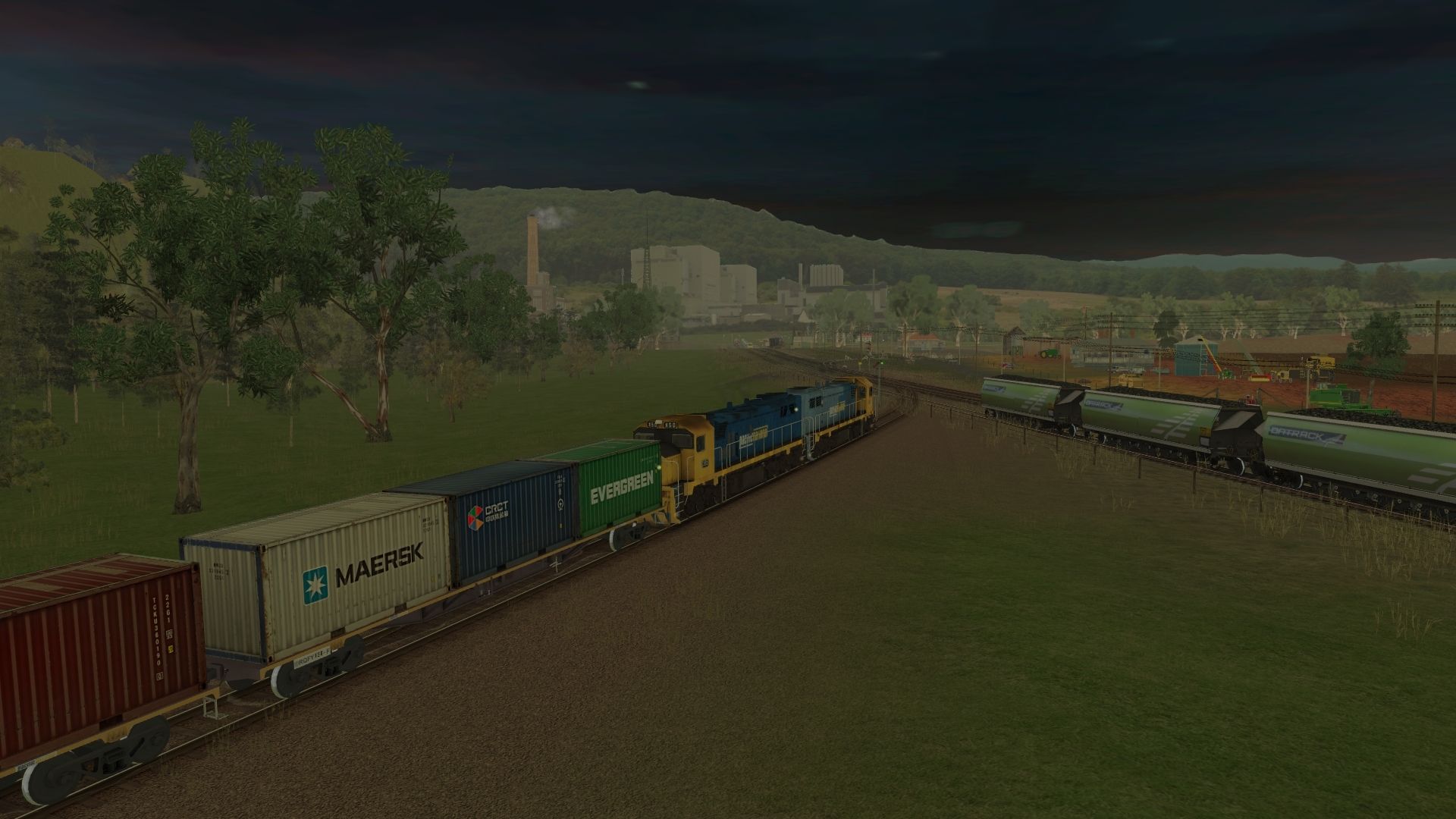 Tags: Trainz: A New Era, ARTC NSW Main South - VR North-East, Default, PN X S3 50 09+ SG, PN X S3 50 17+ SG, NZR DXR Loco 8007, NZR DXR Loco 8022, NZR RM Silver Fern Car A, NZR RM Silver Fern Car B, PN RQFY - 2005+, NSW SRA NQRX Container Wagon, xVg-platform_13-9744_#1, GPLX ex-BN 100 Ton Hopper, NZ - wagon coal LW