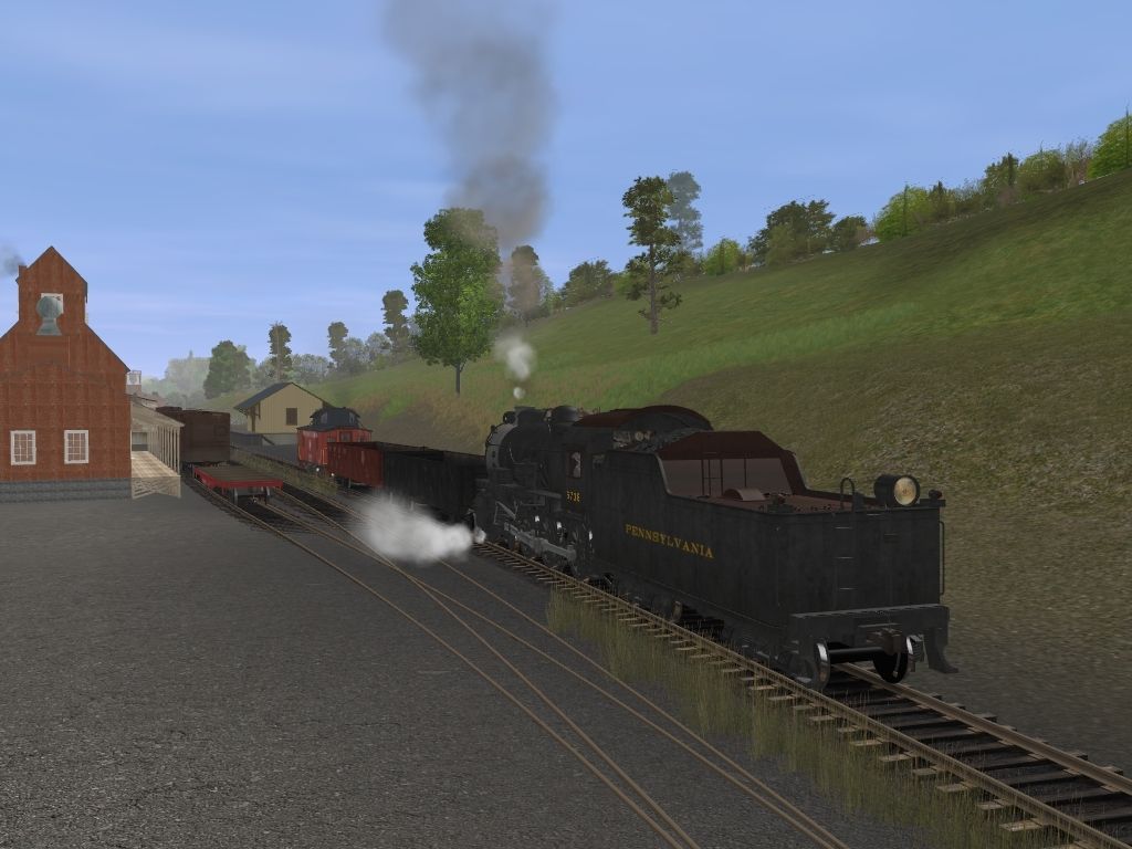 Tags: Trainz: A New Era, Dreaming Pennsylvania Style 1, play, PRR G5 Engine, PRR G5 Tender, USRA C Gondola NM&W, USRA C Gondola PRR, PRR FM flat car, PRR Caboose N6B Gray Side, 40ft Boxcar B&URR A, 40ft Boxcar CA&L 2, 40ft Boxcar Hocking Valley Wood, PRR F22 Flat car, PRR F22 Flat car(Side Planks)
