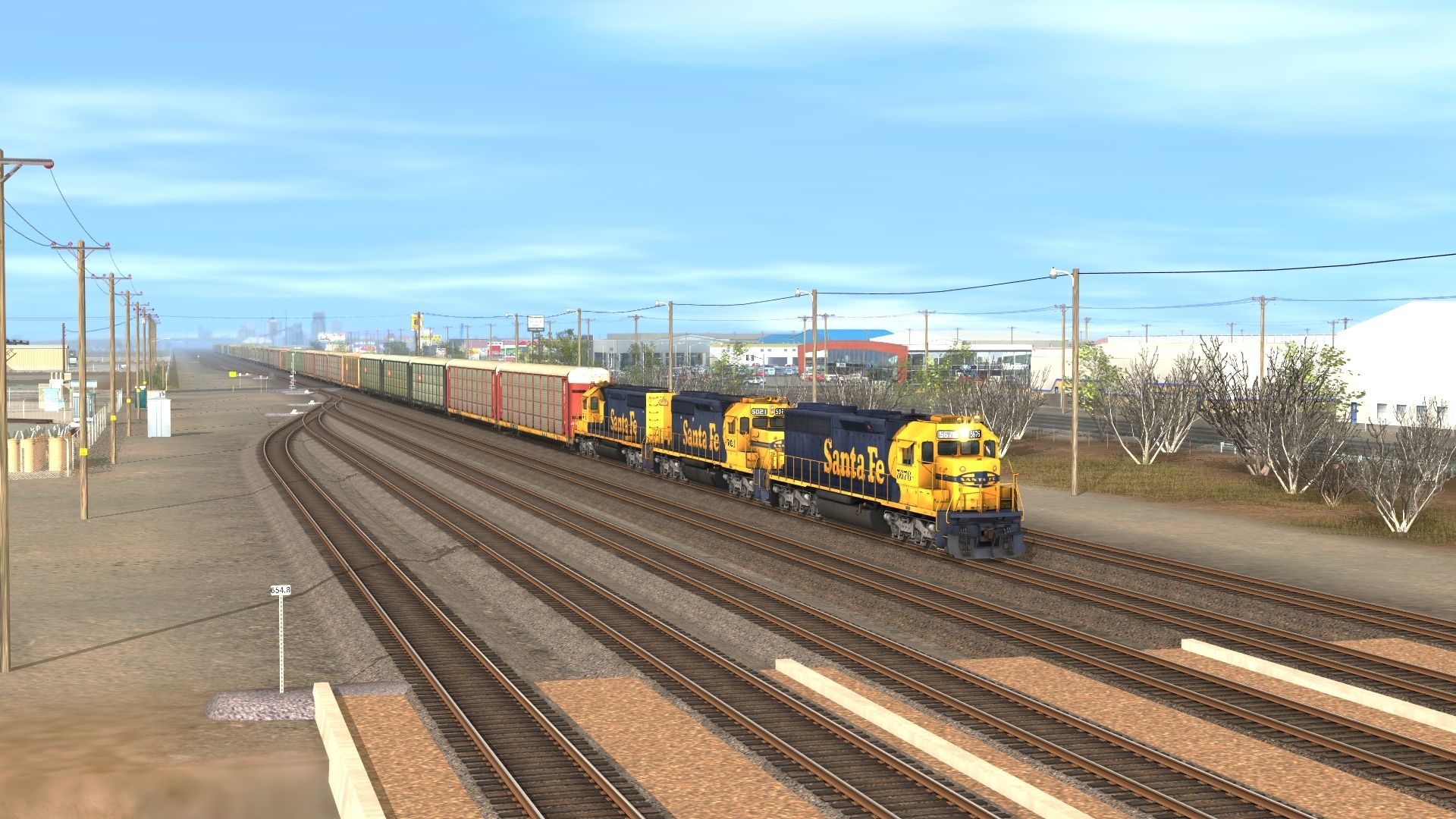 Tags: Trainz: A New Era, BNSF: Clovis to Lubbock, ATSF racks 1, ATSF SD45-2 blue/yellow warbonnet, ATSF SD40-2 2a 123 inch short hood, ATSF SD40-2 2a, 89ft Autorack Tri-Level CP # 541466, 89ft Autorack Tri-Level CN # 964644, 89ft Autorack Tri-Level SP # 54523, 89ft Autorack Tri-Level UP # 459682, 89ft Autorack Tri-Level UP # 454655, 89ft Autorack Tri-Level CSX # 864582, 89ft Autorack Tri-Level SOO # 594559, 89ft Autorack Tri-Level GTW # 346225