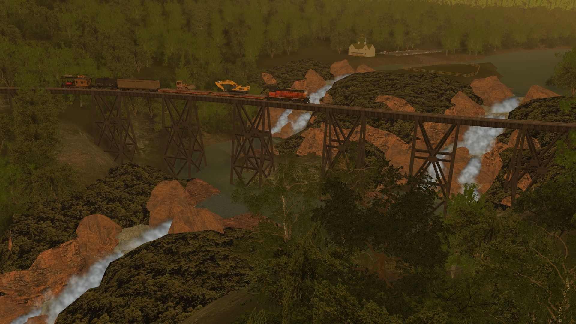 Tags: Trainz: A New Era, Proctor & Northern RR Final, Default, FJ&G S2 20, AMTK 60ft flatcar, IRM GPEX Milk Car Aux Tender, JRPX 10000 gal tank car, ERSX Brake Control Car