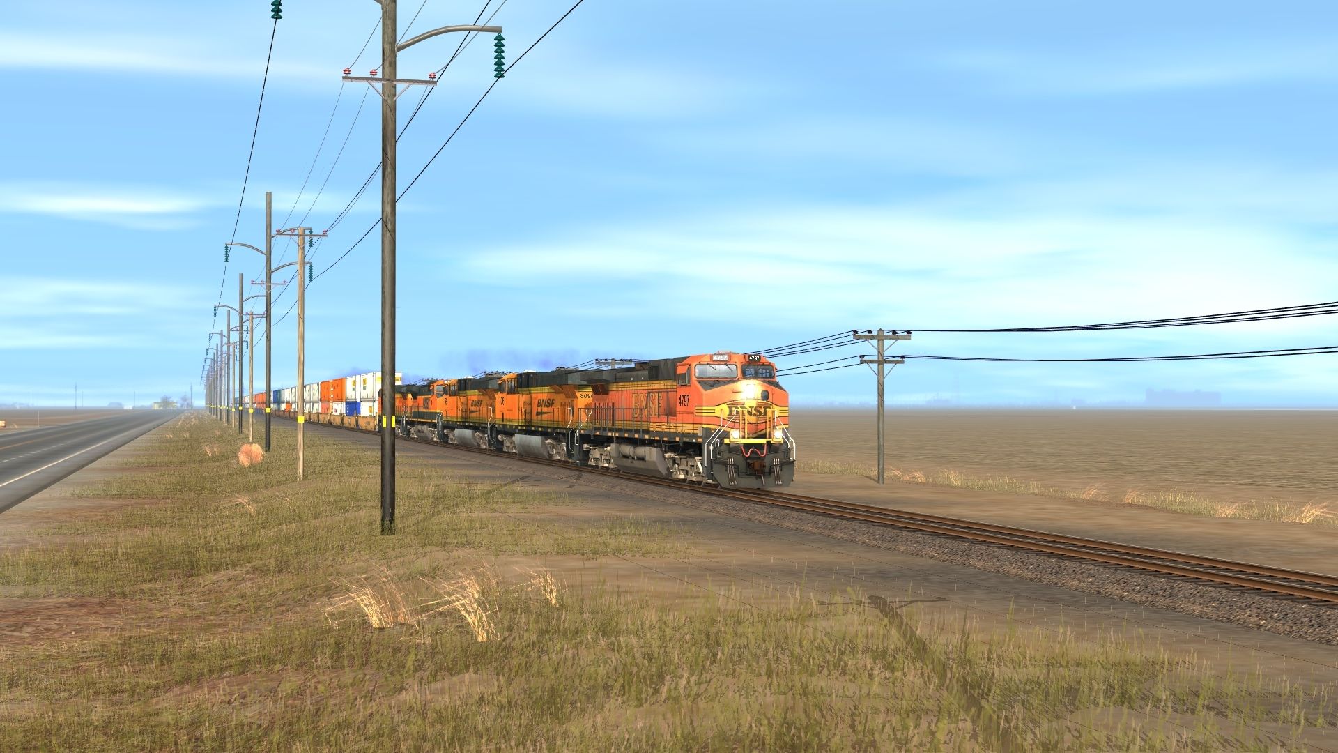 Tags: Trainz: A New Era, BNSF: Clovis to Lubbock, BNSF Z 1, BNSF C44-9W h2, BNSF C44-9W, BNSF ES44DC 7200-7649, BNSF ES44DC 7720-7949, BNSF ES44C4 7950-8399, GWG33: BRAN 6218 B, GWG33: BRAN 6218 C, GWG33: BRAN 6218 A, Spinecar E Unit, Spinecar D Unit, Spinecar C Unit