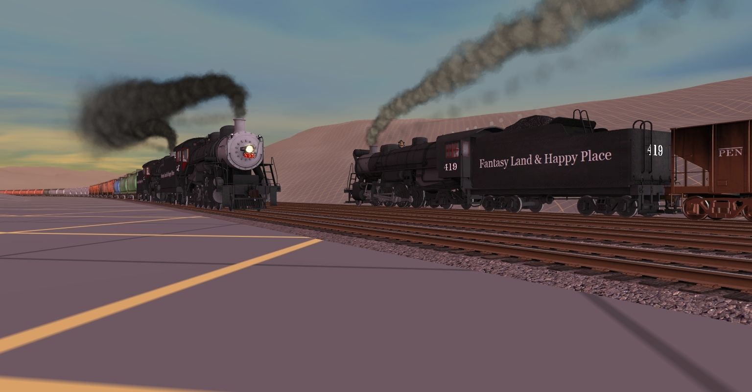 Tags: Trainz: A New Era, Happy Place RR, TBS Light Decapod - Red:BW, TBS Light Mikado, TBS Light Decapod v2 - Red:BW, FL&HPRR C-1 Tender, PRR H21a Hopper, FL&HPRR LM Tender, PRR GLa Hopper, GBCX Cylindrical Hopper, MWGX (dirty) Cylindrical Hopper, ACFX (dirty) Cylindrical Hopper, CNWX Cylindrical Hopper